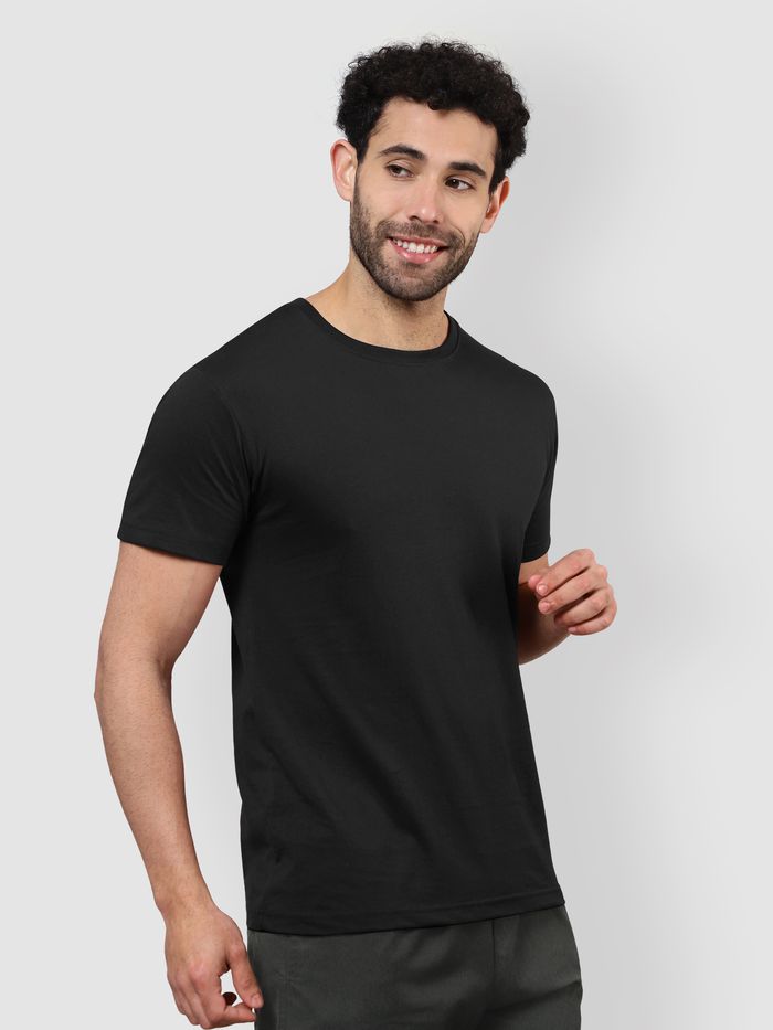 Elevate your everyday style with this classic plain black T-shirt for men. Crafted from soft and breathable cotton-blend fabric, it features a crew neck and short sleeves for a timeless, comfortable fit. Whether you’re lounging at home or heading out, this versatile piece pairs effortlessly with jeans, joggers, or shorts. A must-have wardrobe essential for minimalistic and modern styling.